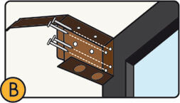 B) ถ้าจะติดด้านนอก เอาแผ่นประกบตัวยึดมู่ลี่ ติดตั้งไว้นอกของหน้าต่าง